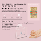 They are thin, durable, and fully removable, ensuring your hardware stays pristine without altering the look of your bag.